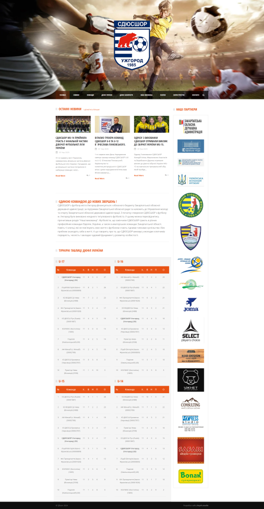 Також оновлено всі блоки та систематизовано контент: інформацію про тренерів, команди, інфраструктуру та новини. Кожен розділ відповідає сучасним вимогам і легко сприймається користувачами.
